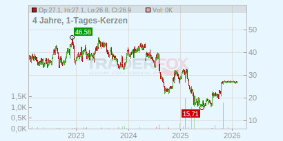 Kursverlauf mit der 50- und 200-Tage-Linie.Alternativen zur Hillenbrand Aktie